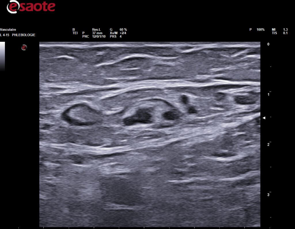 Dans la série ” sclérothérapie échoguidée à la mousse (SEM), traitement de 1ère intention”, après la SEM de la VPS et la SEM des récidives, l’EIS présente la SEM des lames lympho-ganglionnaires inguinales.