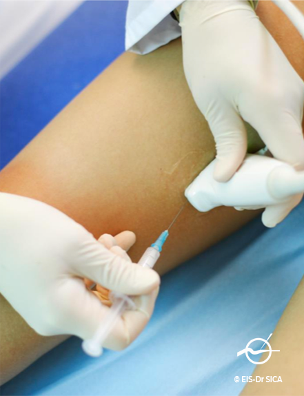 Cette procédure peut être effectuée soit dans la même séance que l’injection échoguidée, soit lors de la séance suivante.